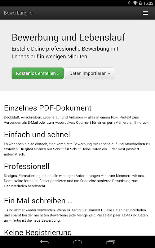 www.bewerbung.io single PDF