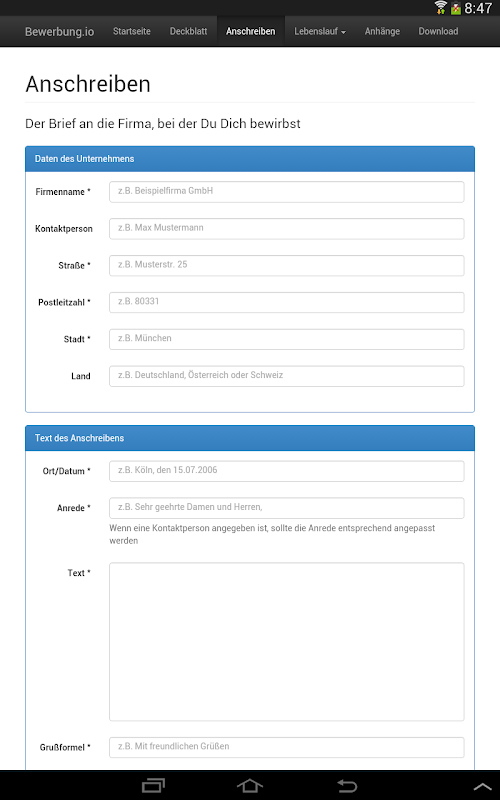 ... And always reuse. When you're finished, you can download all the information and save the next time you apply a lot of time. Passe a few texts and data - ready is the new application. The curriculum often must no longer be changed.