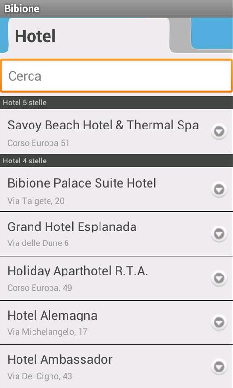 The app works offline, but in a few seconds you can connect to the links suggested in the various sections and to in-depth pages. Thanks to its internal search engine you can quickly find lots of useful information. Practical, rapid and functional, Bibione App is a real resource for experiencing a holiday in Bibione to the full or for discovering and falling in love with this delightful tourist resort on the Adriatic. The main features of the app are offline functioning, a complete list of hotels, agencies, campsites and holiday villages, classifications by area and by category, info on beaches and consortiums, shops and restaurants, fun and culture, telephone numbers and Internet sites, geo-localisation, services for tourists, useful and emergency numbers, search engines, Internet sites, contacts and telephone numbers.