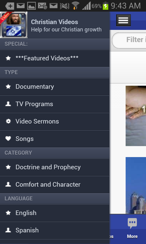 - You can sort them by type: Documentary, TV Programs, Video Sermons, Songs…
