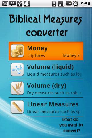 This app will help you to quickly convert measures an units we usually find in the Bible and other historical books to modern units.