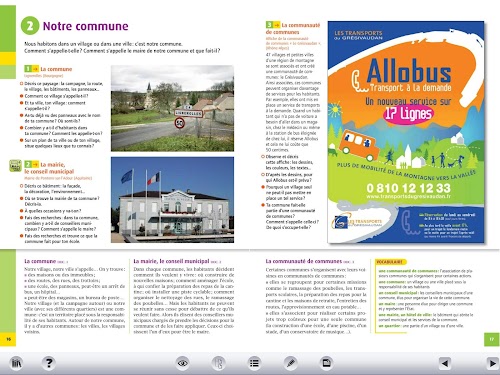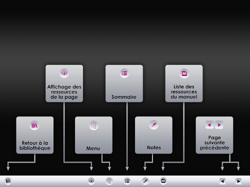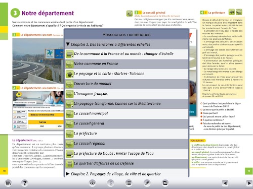 - Un double accès aux ressources du manuel : dans les doubles pages et via le menu du manuel interactif