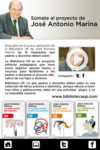La Biblioteca UP es un proyecto editorial pedagógico, ligado a la Universidad de Padres de José Antonio Marina, que tiene como objetivo aportar textos y recursos para facilitarles a los padres o docentes el proceso educativo de sus hijos o alumnos. Educar a nuestros niños y adolescentes debe ser una actividad alegre, y no un ineludible martirio.