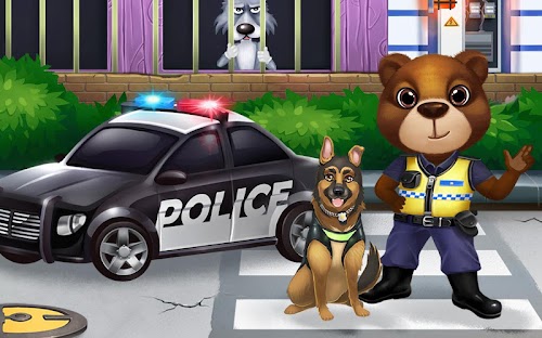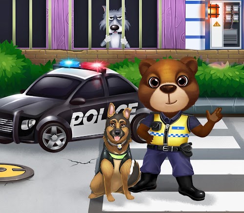 Start by picking out a policeman's uniform fit for a bear. Gotta look good if you're going to be a cop, right? Next, pick out which ride you'll use to drive around the neighborhood. Fancy police car? A hero's motorbike? It's your choice, just remember to ride in style, you've got a thief to catch!