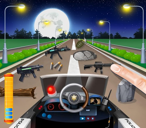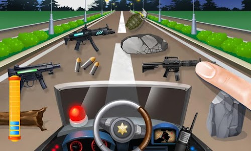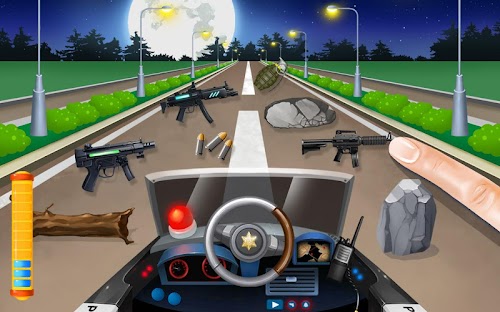 With the uniform and the ride taken care of, it's time to solve complete mini games! Drive through the street as you tilt the screen to pick up weapons, avoiding rocks, logs and other obstacles along the way. You'll need everything you can get to catch that thief, so don't leave a single one behind. Once the drive is over you'll start the mini game chase scene. Jump over obstacles as you hunt down that wolf thief and collect as many points as you can!