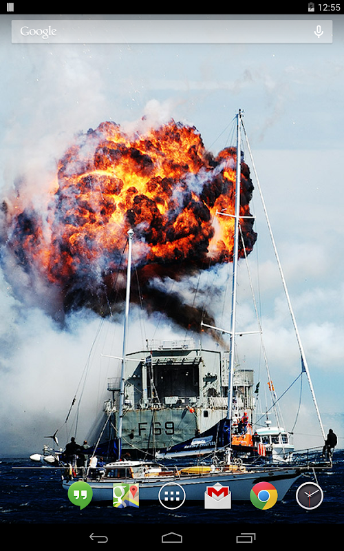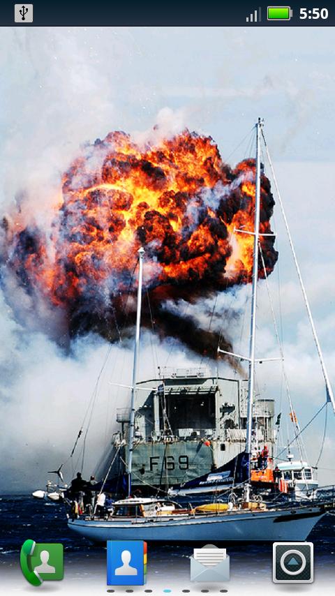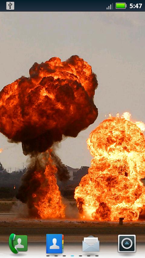 No explosions were harmed in the making of this app. Select text from Wikipedia, which does not endorse this product. Licensed under the creative commons (creativecommons.org/licenses/by/3.0/). Text at wikipedia.org/wiki/Live_Wallpaper and wikipedia.org/wiki/Explosion.
