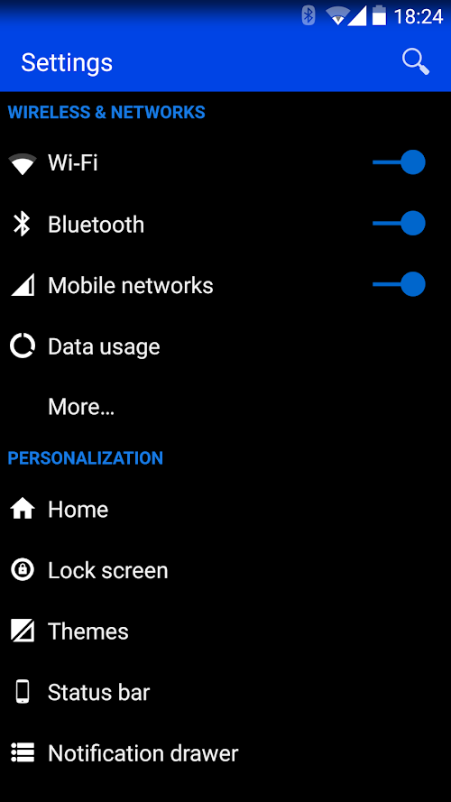 As a color variation - based on popular demand for a blue theme - BigWave is a theme based on the DarkMTRL theme which is available for CM11.