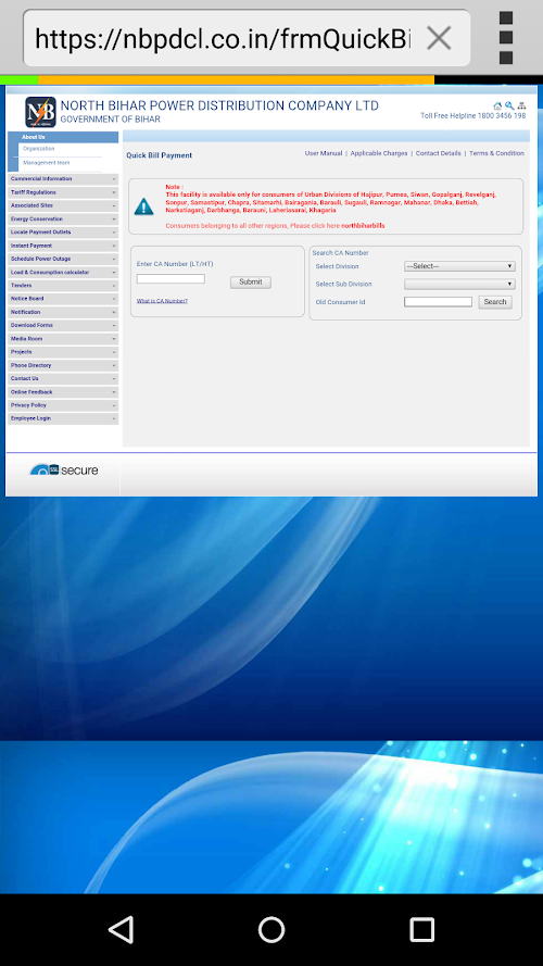 For Payment of Electricity Bill for North Bihar Divisions through NBPDCL (North Bihar Power Distribution Company Ltd) consumers have to follow the same process as given for SBPDCL. Only Website Address is different.