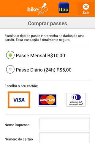 Com ele você pode se cadastrar, adquirir passes de utilização, retirar bicicletas das estações, localizar estações, dentre outras ações.