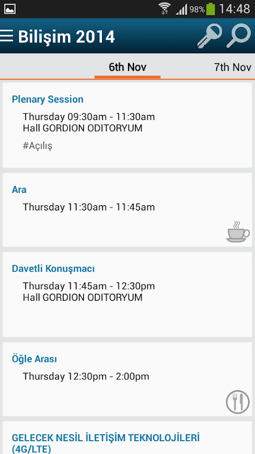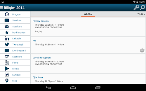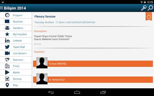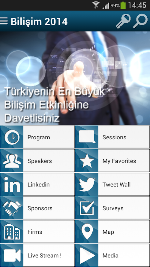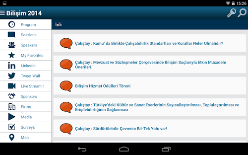With this app, you can follow the event program of "Bilişim 2014 - Citex 2014", look for speakers and sessions.