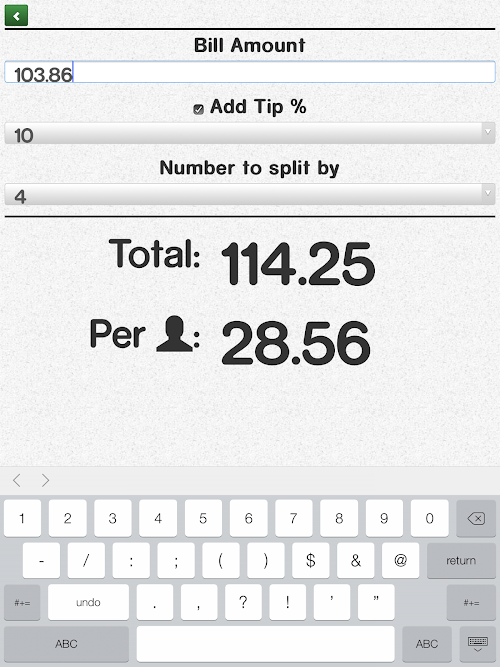 - Remembers the last tip ‰ and number of people from previous bills to save time