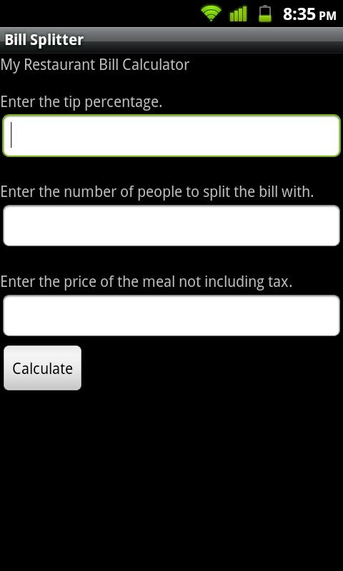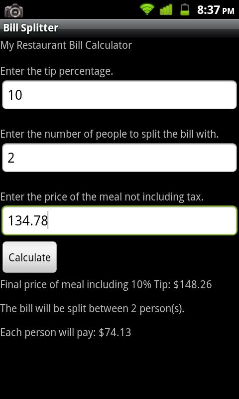 A simple application that calculates the amount each individual should pay when splitting a bill with friends.