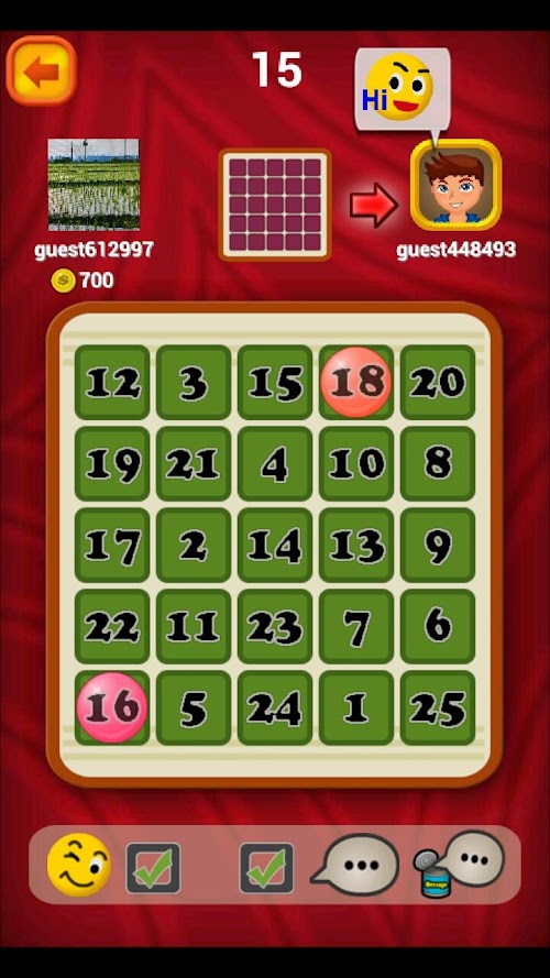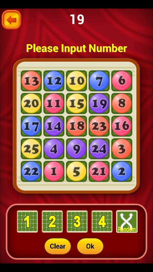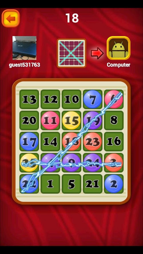 Bingo Battle is a simple puzzle game. The rule of the game is very simple. Firstly, fill number 1~25 into the 5 by 5 grid. Then, the players choose a number in turns.(The chosen number is unrepeatable.) It's called "Bingo" when the chosen numbers make 5 lines. The player who can make 5 lines first is the winner.