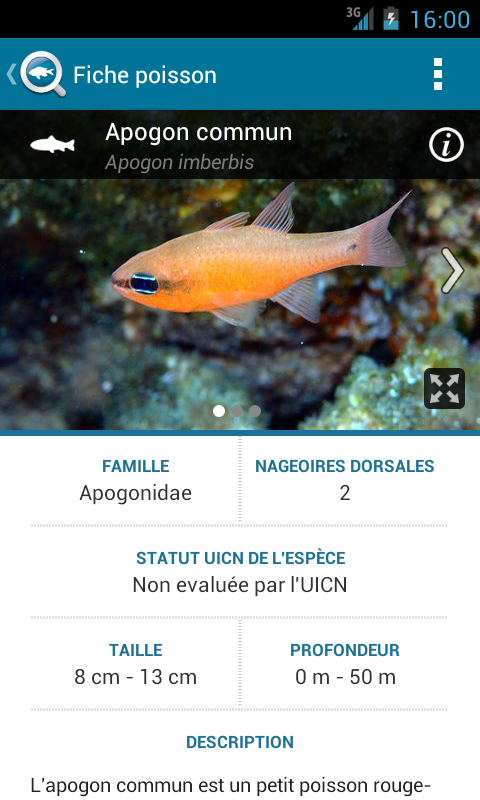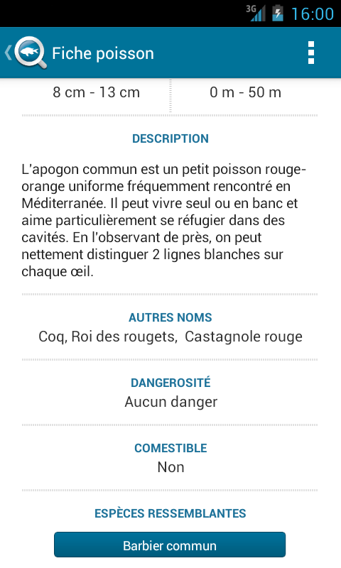 - ComestibilitéBiodiverSea is a smartphone application facilitating the identification of Mediterranean fish. It has more than 180 species, more than 400 photos and a questionnaire to help identify. This easy to use application designed for divers, followers of PMT (Fins / Mask / Snorkel) and more generally to all those wishing to explore the underwater biodiversity Mediterranean.