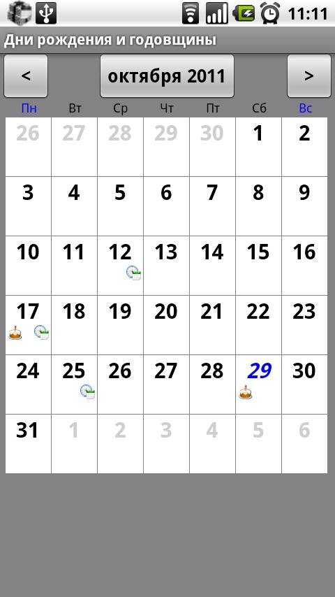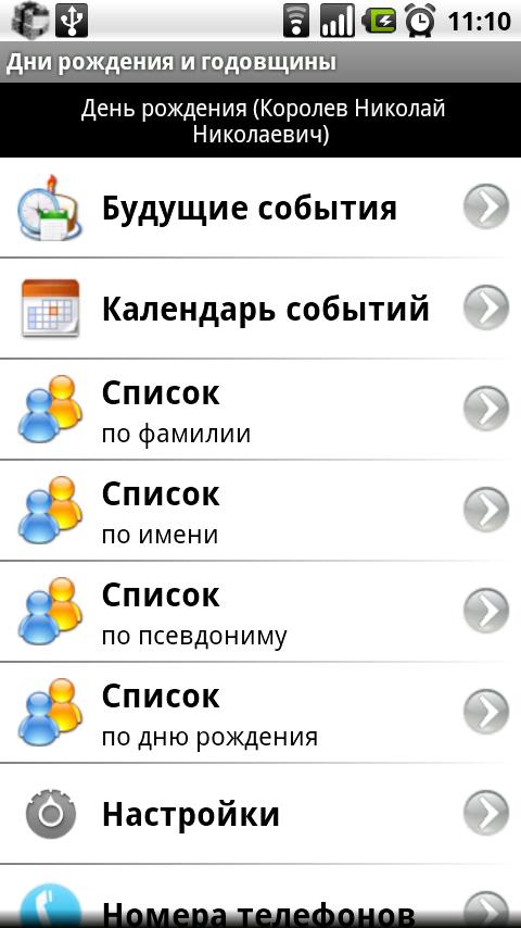 Birthdays and other every year events (Russian edition, for English edition see: Birthdays & Reminders (without "rus" in the title)).