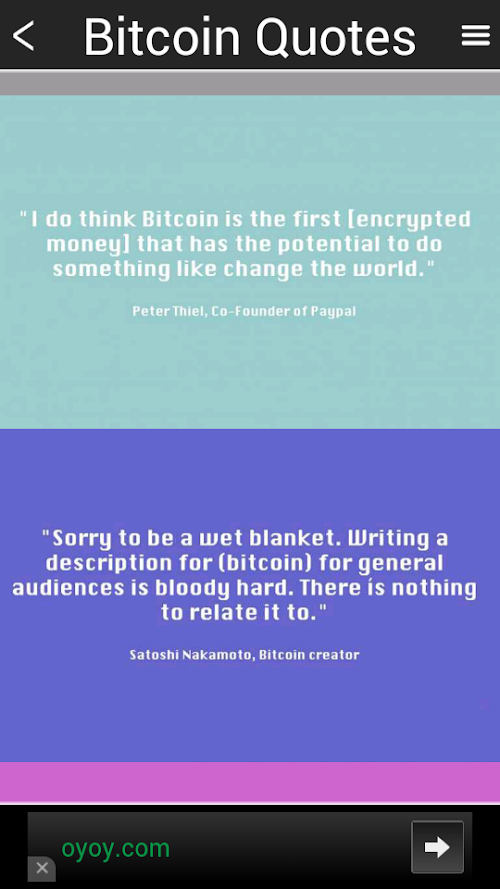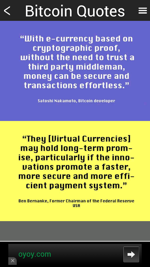 Bitcoin Quotes is the perfect app for seasoned bitcoiner’s and beginners alike. We have condensed some of the greatest and most inspirational quotes about bitcoin into stunningly simple images available in one handy place.