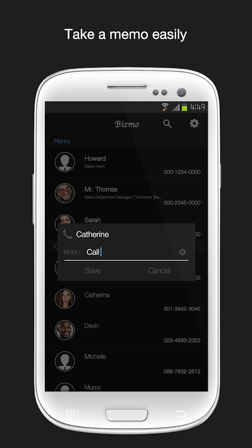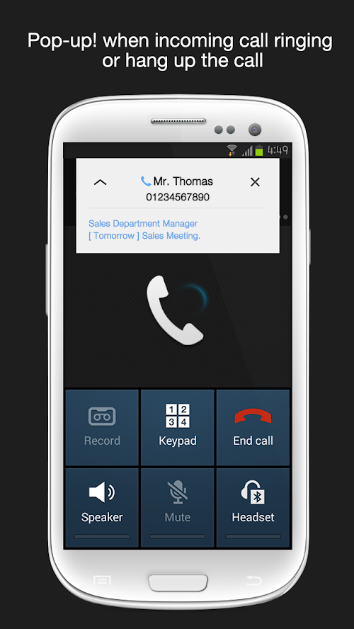 - Popup memo will be displayed automatically every time as soon as incoming call ringing or hang up the call