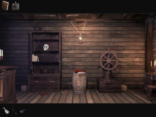 There was smooth sailing on your boat which transported goods to the new world. You didn't even dream what's going to happen next. The sound of cannon ball flying split the silent night. There was no silence in the moments that followed, the sounds of crashes and burning fire. Pirates jumping to your ship and capturing the crew. They took you on their ship, but somehow in the commotion you managed to escape them and ran. Place where you ended up was nothing other than captain's room!
