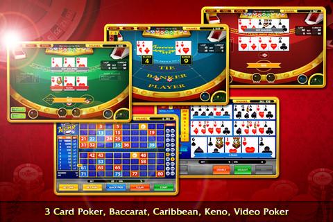 Blackjack, Roulette, Slots, Keno, Video Poker, 3 Card Poker, Caribbean, Baccarat, Dice