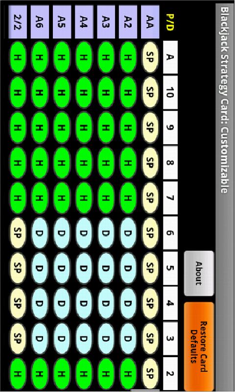 Blackjack Strategy: Customizable app provides a way for anybody to learn what actions to take in various situations when playing Blackjack and to be able to customize those actions based on your preferred way of playing to create your own method.