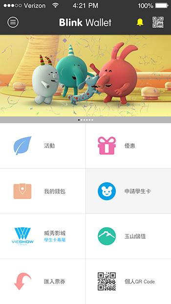 Blink Wallet App旨在將票券電子化,為使用者省麻煩。Blink與眾多廠商簽約,無論線上購物、訂票或至特約店家消費,只要用手機和一組QR Code,便能快速完成並享優惠。在付款機制上,考量多數學生沒有信用卡,Blink跟玉山銀行合作儲值支付帳戶,讓一般民眾和學生能透過線上申請、扣款簡便完成交易。