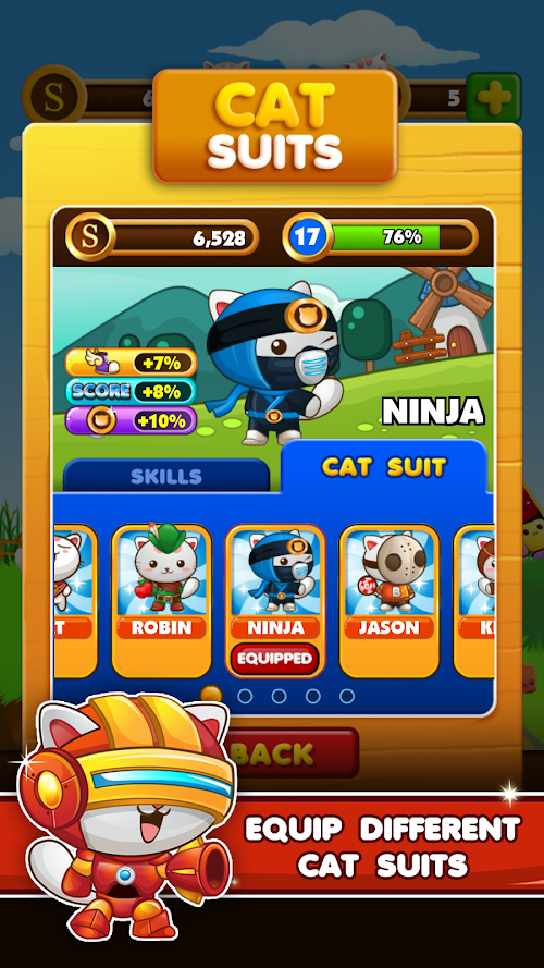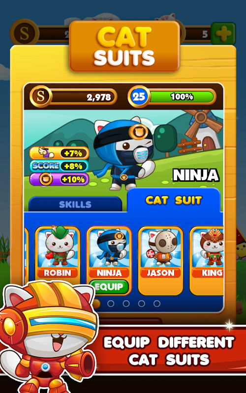 Use different cat costumes to create unique character and boost your abilities! Meaow!