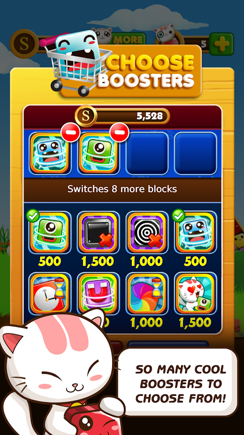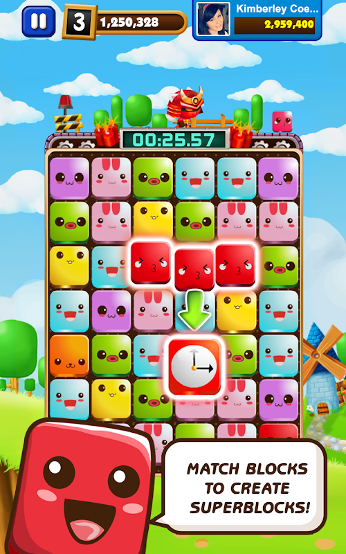 Matching three of a kind creates a Super Block! Match Super Blocks to activate them and score more points!