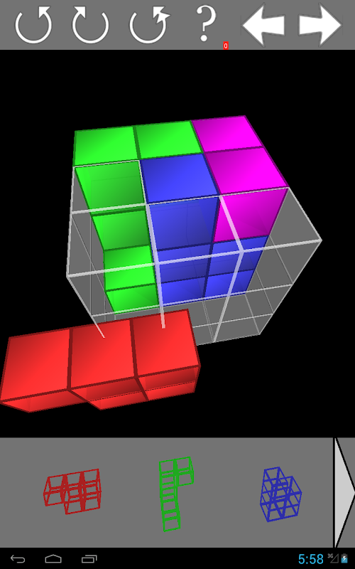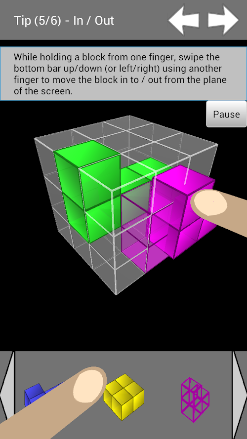 This games comes with multi-touch gestures that allow you to move blocks not only along the screen, but also in towards or out from the plane of the screen.