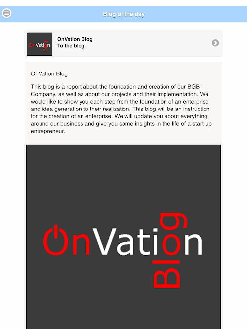 Finally, the long search for good blogs has an end. Every day you will be presented a Blog. The Top Blog is for 24hours the "Blog of the Day". Subsequently, the blog for a further 6 days is listed under "blog".
