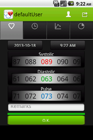 - Track pressure (Systolic & Diastolic) and pulse reading