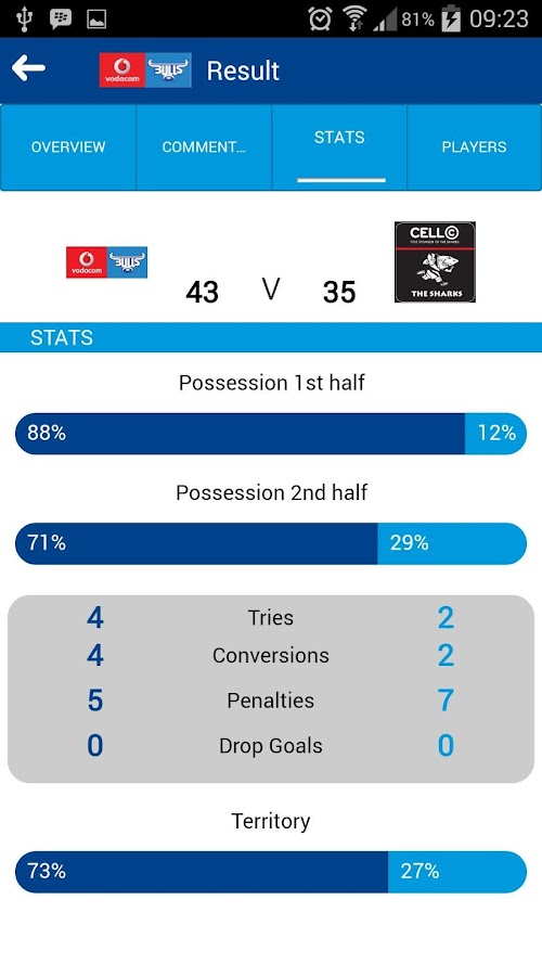 This is only the tip of the Bulls’ horns as the App will be packed with even more features in future as Vodacom puts the power into the fans’ hands.