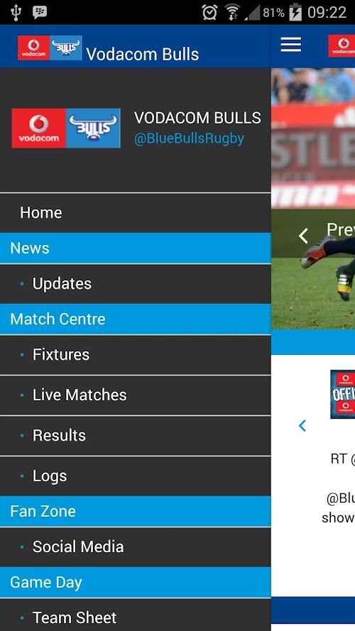 The Blue Bulls App is your home away from Loftus Versfeld where you will have exclusive access to the players 24/7.