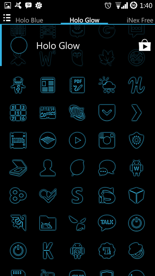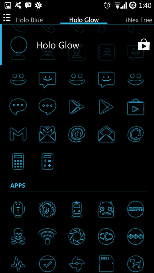 This version of Blue Glow Go Apex Nova Theme Android App comes with one universal variant which will work on all the Android devices.