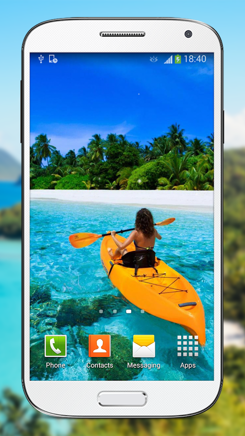 Welcome to your own personal beach paradise! Are you ready to indulge in a sweet daydream which will take you to a distant blue lagoon? If you feel unmotivated by the weather outside just take a look at your phone screen and you will immediately feel energized by the magnificent power of nature. Imagine yourself sunbathing at the beach, drinking a cocktail, while the warm water is soaking your feet. A pleasurable sight, isn't it? Now you can have “beach pictures” to help you with your daydreams. Download ✽ Blue Lagoon Live Wallpaper ✽ and let eternal summer reign in your phone.