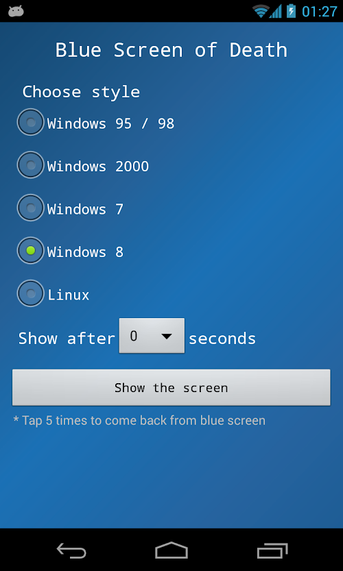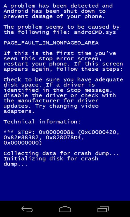 Would you like to try famous Blue Screen of Death in your Android phone?
