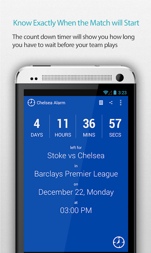 Blues Alarm reminds you when Chelsea play. It shows you the kick-off timing for the upcoming match and creates a reminder to ring 30 minutes before the match begins. We believe in simplicity, there are no complicated options or settings. Just open the app every once a while to check the match timing and it'll chug along.