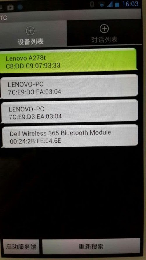 这个安卓应用程序实现了两个手机之间的聊天通信。其中一个作为服务器端,另一个作为客户端,通过蓝牙将两者相连,实现实时数据通信的功能。可用于既没有手机信号又没有wifi的情况下,如屏蔽手机信号和wifi信号的会议厅等特殊环境中。这个程序稍作改进即可用于物联网领域,尤其是智能家居系统中应用是非常广泛的。