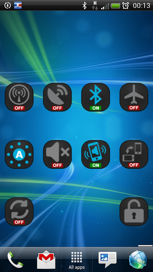 Application "Bluetooth OnOff Toggle Widget" is a simple widget (1x1) that allows user to easily change Bluetooth to either on or off.