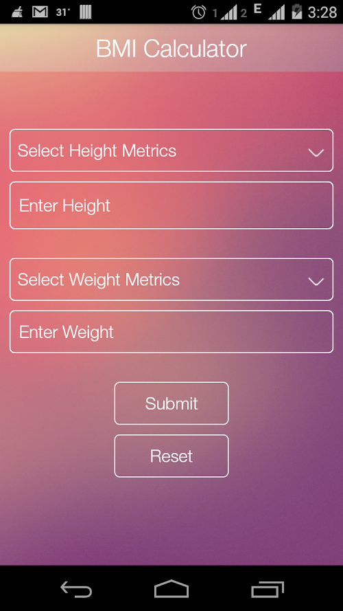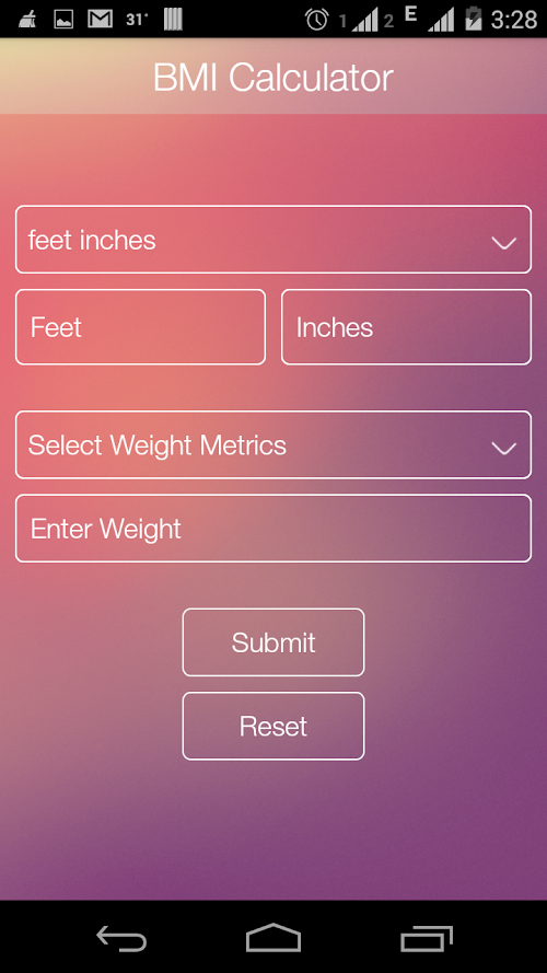 This version of BMI Calculator Android App comes with one universal variant which will work on all the Android devices.