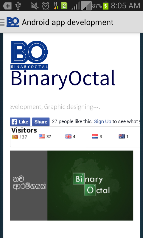BinaryOctals in designing high quality and business oriented websites, softwares, Android apps and graphics. Our experienced team follows a set approach to ensure we give you the best design and development that speaks out for itself and scores well on usability and professionalism. Our designs and developments are done keeping in mind your target audience and your business purpose/ vision.