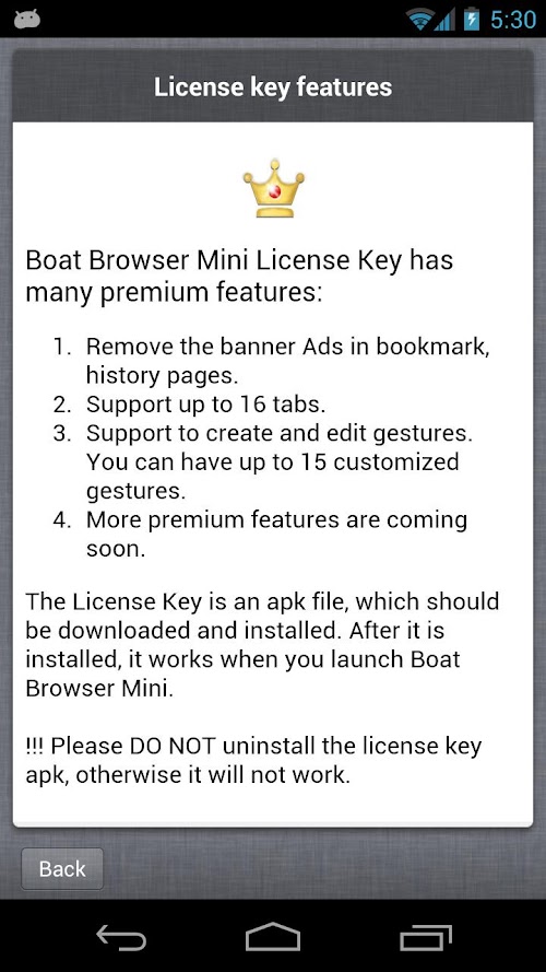 Boat Browser Mini License Key is used to unlock premium features in Boat Browser Mini. Premium features includes: