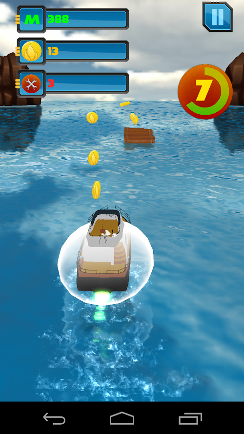 Don’t just collect coins. Also keep your eyes open for power ups. You can collect everything from magnets that will pull coins towards you, to speed boost and repairs. Also added, you now have missions. These missions can give you a huge coin collection boost and aid you in your ship upgrades.