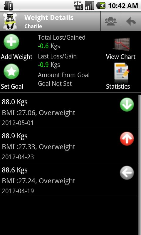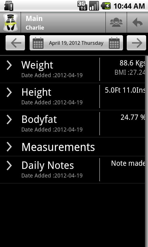This app allows you to track & monitor your weight, height, body measurements, BMI , body fat and add daily notes - not just for you , but your whole family & friends as it is multi user enabled for no extra cost.
