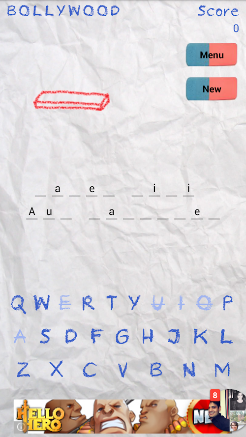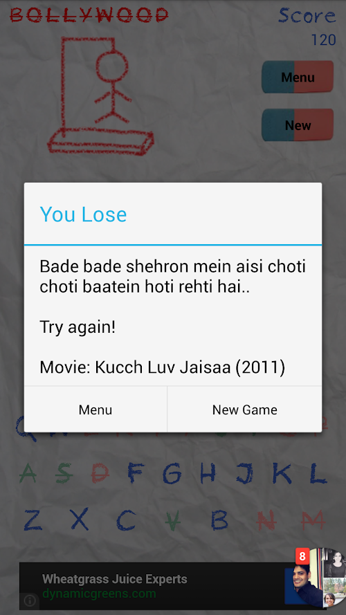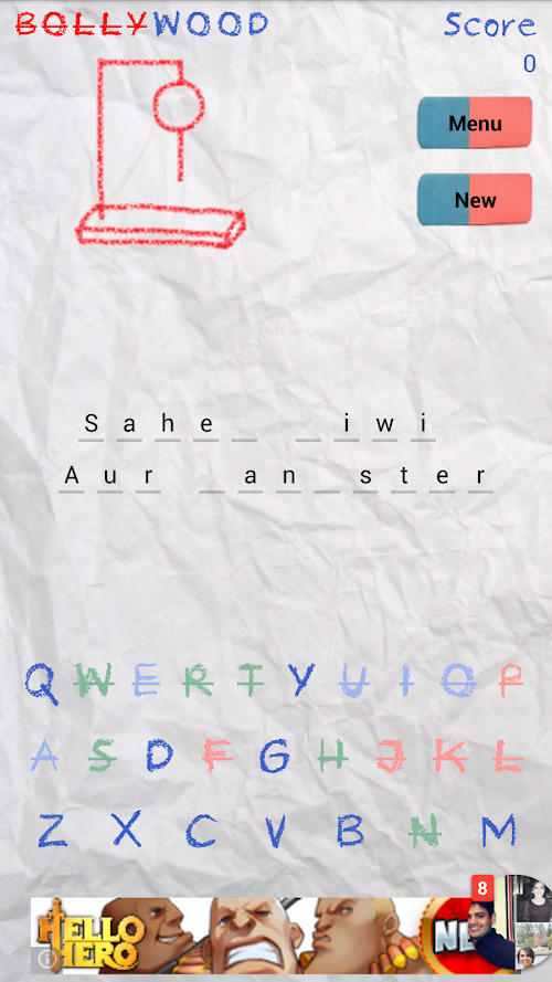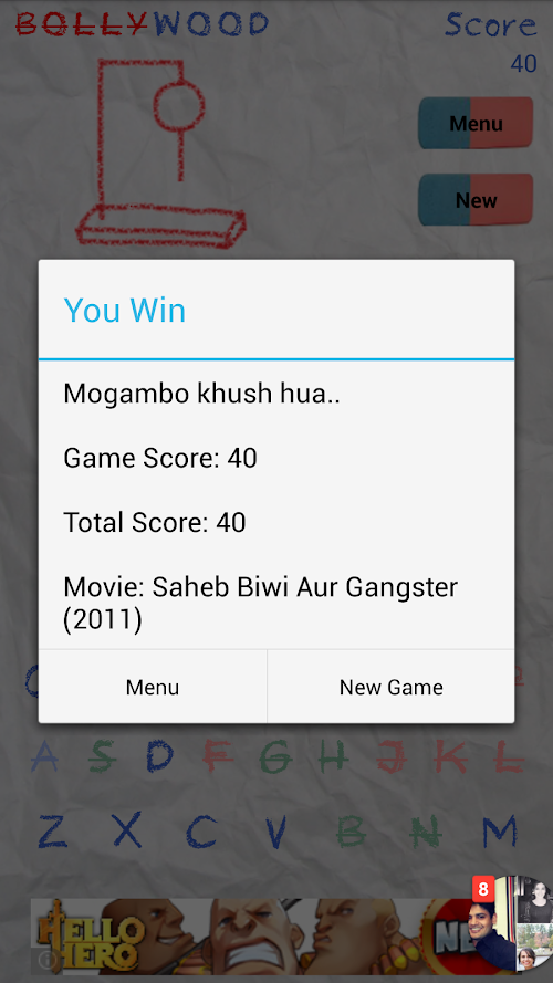 You can't help but recall the good old memories of the pen and paper Bollywood game and relive the thrill of getting away with mischief in a dull lecture. The game challenges you to guess the name of a Hindi movie and escape from the Hangman who tries to strike all the letters of the word Bollywood and hang you.