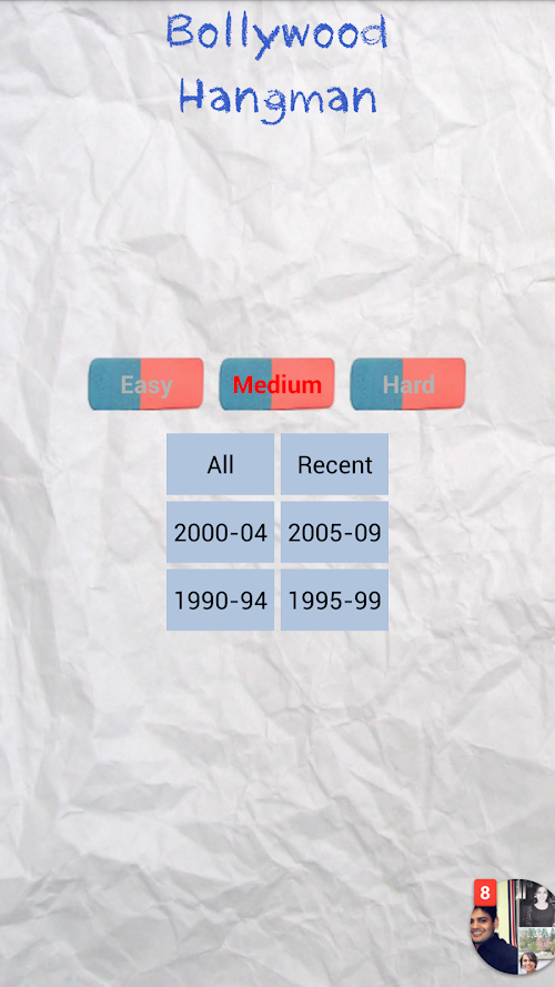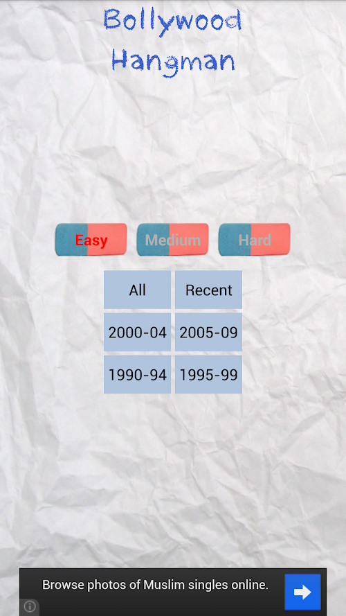 You have three levels to choose from. The easy level displays all the vowels present in the movie name with nine chances to win while the medium and hard levels provide no hints with nine and five chances to win respectively. Go ahead and bring out the movie buff within you.