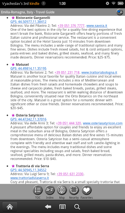 This fully-functional guide is absolutely free. The full version (only $4.99) adds Text-To-Speech and expands articles with more information about attractions, history, culture, itineraries, phrasebooks and more. Listen to complete articles on the go with Text-To-Speech: double-tap on a word to start Text-To-Speech from the selected word or select Menu > Start Text-To-Speech.
