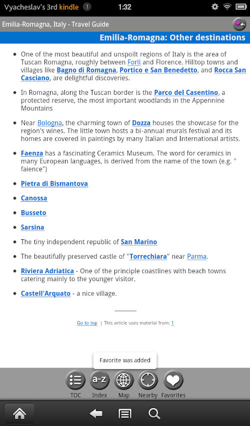 MobileReference Travel Guides provide detailed, practical information about attractions, landmarks, transportation, cultural venues, dining, lodging, history and much more. They are indexed alphabetically and by category, making it easier to access individual articles. Attractions can be viewed on an offline GPS map along with your current location so that you can easily find attractions near you as you explore the city.