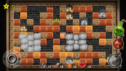 Use the virtual joystick to move around the screen and place the bombs strategically.