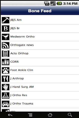 Bone Feed is a RSS based abstract collection from Orthopedic peer reviewed journals and other web based media sources regarding Orthopedic Surgery. It will be of interest to the practicing orthopedic surgeon, fellows, orthopedic residents, and anyone with an interest in Orthopedic Surgery.