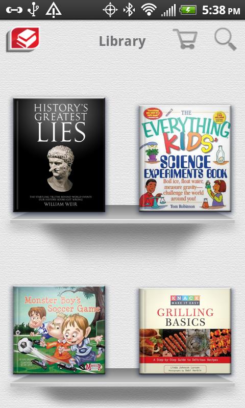 • Displays books in full color, with fonts, pictures, and layout as the publisher intended.
